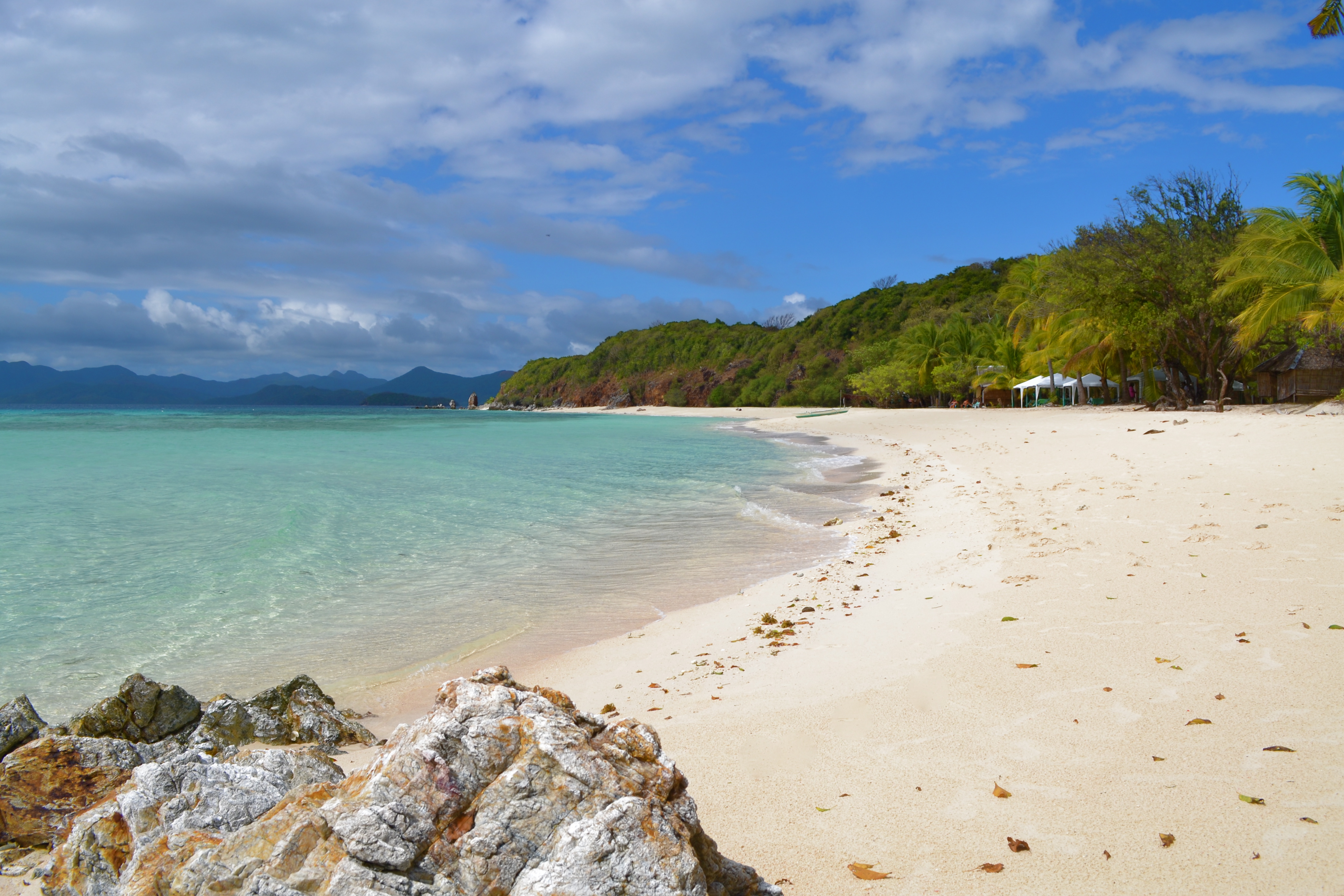 Our third day in Coron would be spent farther from the main island. Early in the morning right after breakfast we hopped into the same boat we used the previous day. It would be with the same tour guide and the same boatman. We had to leave early as we would be traveling for two hours to the outlying islands of Coron. It was quite the dreaded choppy seas that we got into the latter part of the trip that made my parents feeling uncomfortable. Thank God we arrived safely in our first island destination, the lovely Malcapuya Island. The island has probably the most beautiful and well-maintained beach that I have visited.